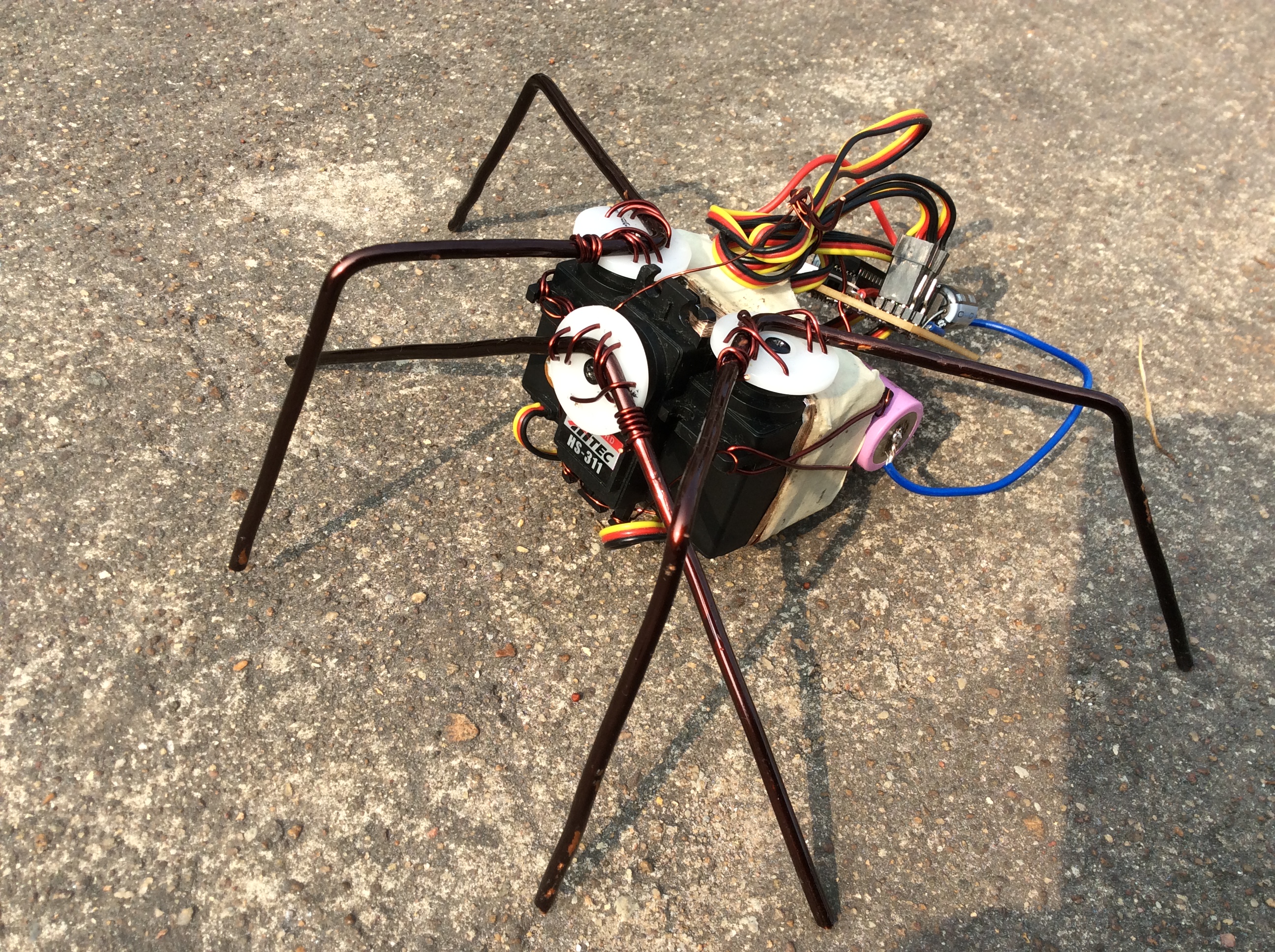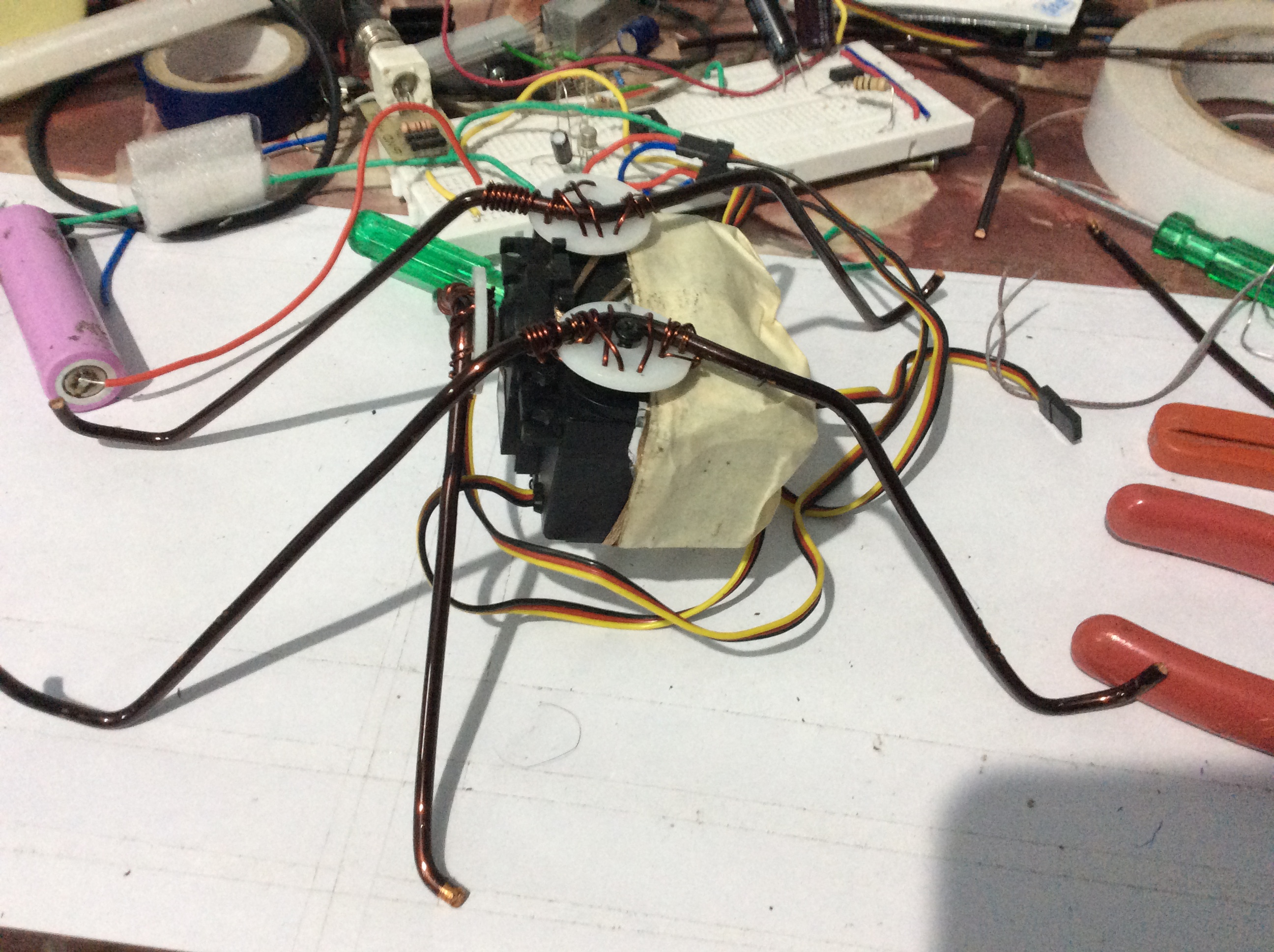 With bending tools I was able to mould legs like and fix them to the motors.spider cons4